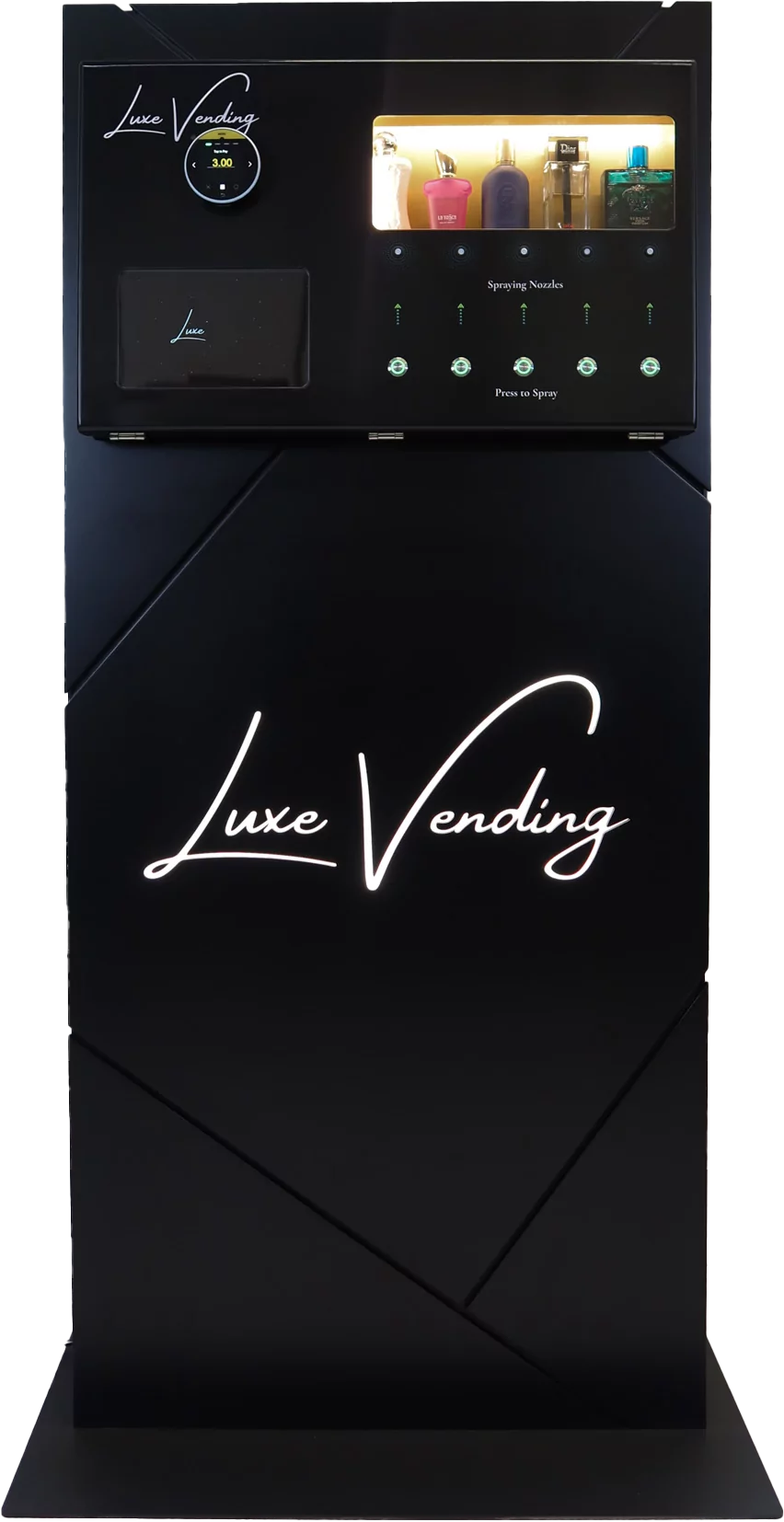 De Luxe Vending machine biedt een exclusieve geurervaring in een elegant, high-end design. Dit luxe apparaat spuit premium parfums, zorgvuldig geselecteerd om klanten een moment van verfijning en luxe te bieden.
